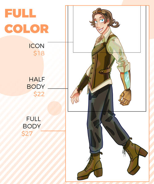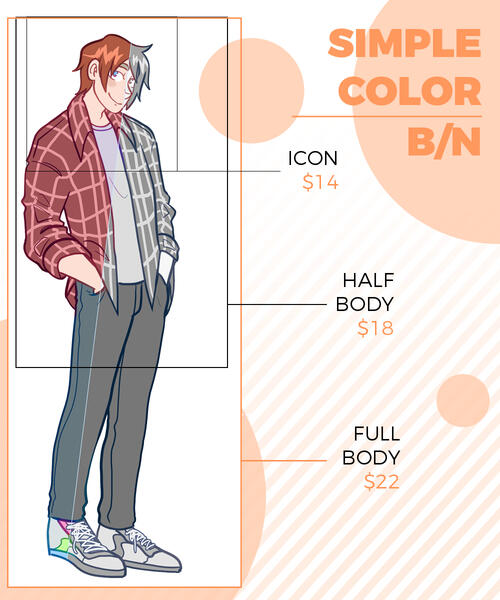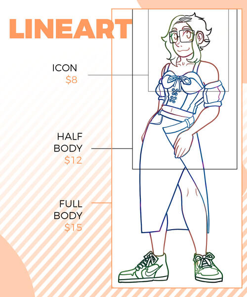 EXTRA PRICES:+Prices may vary according to complexity.+An extra character is equivalent to 80%+ increase of the price (depends on complexity).+Backgrounds are plain colors, a complex background is equivalent to 60%+ price increase (depends on complexity).+NSFW is charged 20%+, plus extra character cost if more than one.TERMS AND CONDITIONS:+You can use the drawing for whatever you want, except if it is for commercial purposes. PRICES ARE FOR PERSONAL USE ONLY. In case of commercial use, we can make a contract under other conditions and prices.+You are NOT allowed to EDIT, TRACE or MODIFY the final artwork.+You have to pay at least 50% before the commission starts and finish the payment before delivering the final file.+ You can be refunded 80% BEFORE you start drawing, if the drawing has already been started no refunds are made.+Once the commission is finished, I will send you your image (PNG, JPG) via drive or gmail.+2 major changes are allowed in the sketch process and 3 moderate adjustments in the linear and color part (to adjust the color palette). Any changes beyond those allowed will be an extra cost.+Waiting time is between 3 days and 2 weeks, if it takes longer, I will contact you and keep you informed.+I only do work in my style of drawing.+I have the right to refuse a commission proposal for any reason.+I have the right to use the illustrations for promotional and portfolio purposes.+Payment is via PAYPAL (USD) (O transferencia interbancaria para México)AT THE MOMENT YOU SEND YOUR ORDER I WILL ASSUME THAT YOU HAVE READ AND ACCEPTED ALL TERMS AND CONDITIONS.